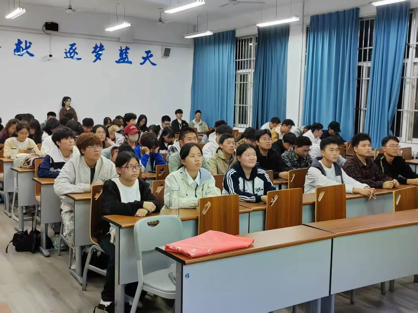 讲座伊始,宣讲员以饱满的激情开启校史画卷。那慷慨激昂的宣讲声与眉飞色舞的神态,让在场新生无不沉浸在西航70年的岁月沉淀中,读懂了“航空强国”背后的坚守与担当。